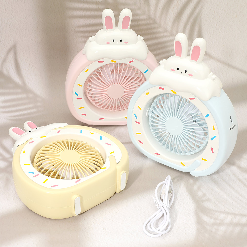 Details • Size : 6" X 7.5" X 1.7" • 3 Speed Control • USB Charging Cable Included • Adorable bunny-shaped desktop fan designed for gentle personal cooling at home, office, or study spaces. Compact size fits desks and shelves easily while adding playful charm. Ideal for kids, gifts, dorm rooms, and everyday comfort with quiet airflow.