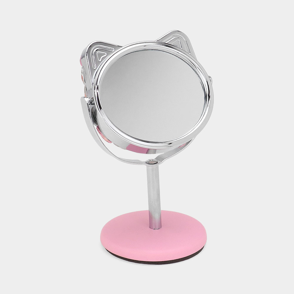 Flower Pearl Stone Embellished Cat Ear Pointed Makeup Tabletop Swivel Mirror