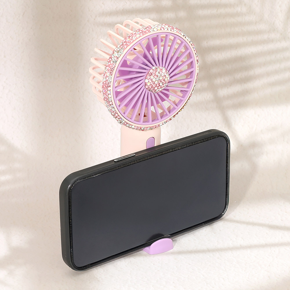 Rhinestone Accent 3-Speed Portable USB Rechargeable Handheld Mini Fan