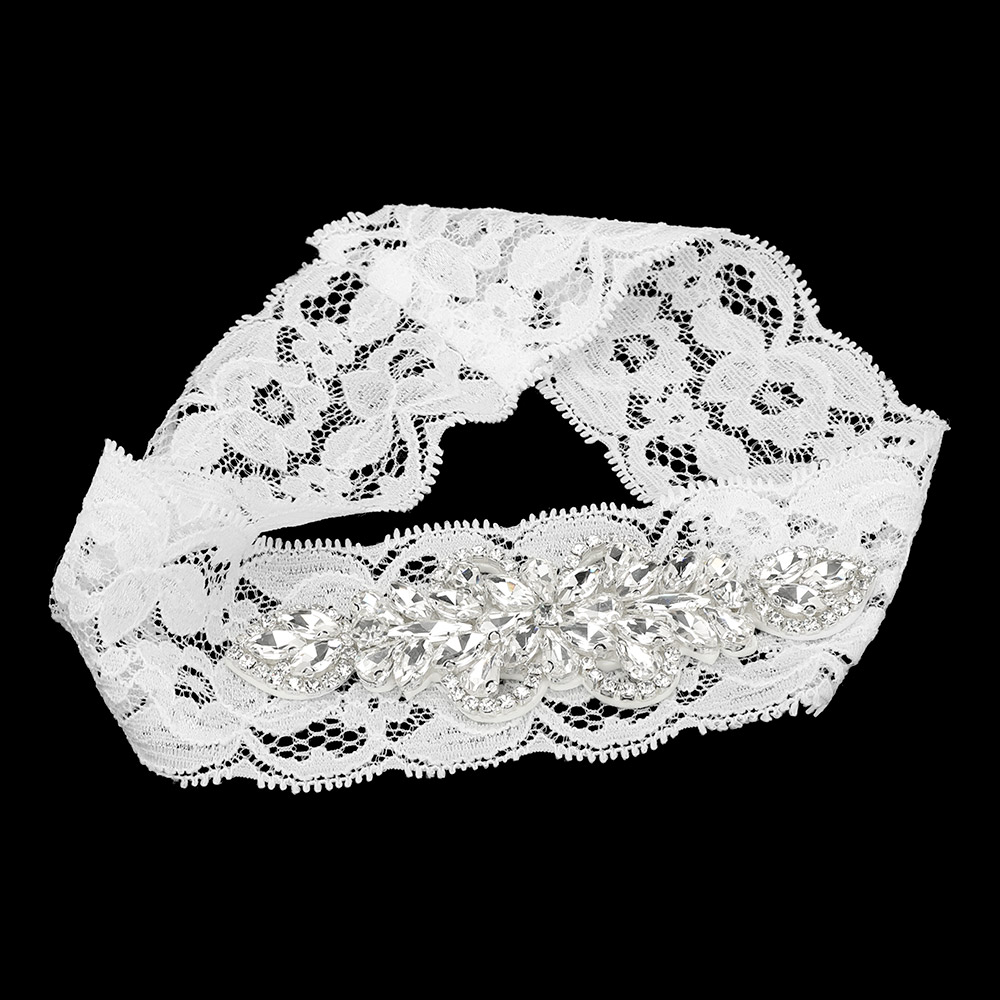 Flower Stone Cluster Accent Lace Stretch Wedding Garter