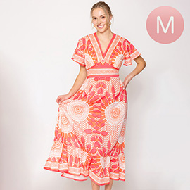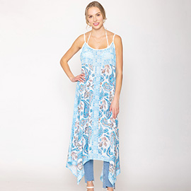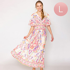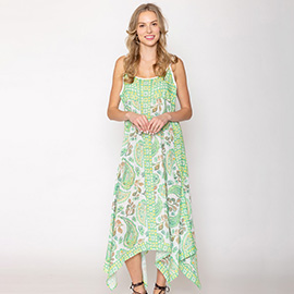 Paisley Flower Leaf Pattern Printed Flowy Long Dress