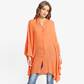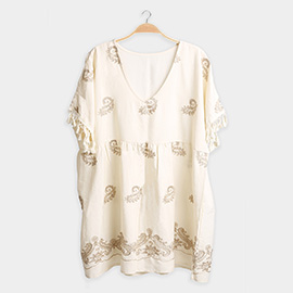Boho Pom Pom Trim Button-Up Tunic Dress / Top Shirt