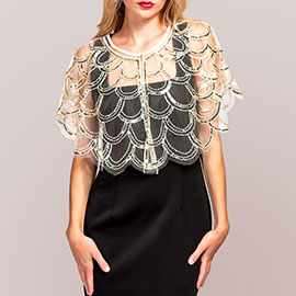 Faux Fur Trim Rhinestone Embellished Hem Poncho Shawl Quick Shop