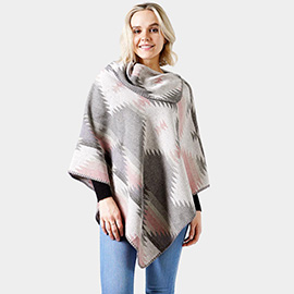 Boho Geometric Tribal Inspired Pattern Printed Tie Front Kimono Poncho