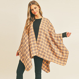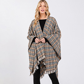 Trayed Trim Open Front Tweed Poncho Cardigan
