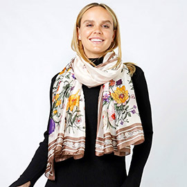 Floral Framed Border Printed Square Silky Satin Bandana Scarf