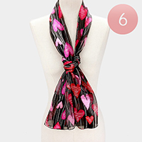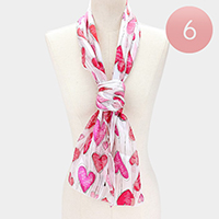 6PCS - Silk Feel Satin Striped Heart Patterned Scarf