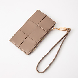 Faux Leather Weave Flat Wristlet Card / Coin Wallet