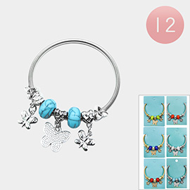 12PCS - Elegant Sparkling Accents Butterfly Charm Stretch Bracelets