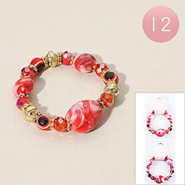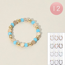 12 SET OF 3 - Color and Clear Beaded Multi Layered Stretch Bracelets