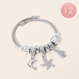 12PCS - Flower Heart Dolphin Charm Stretch Bracelets