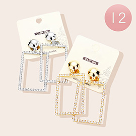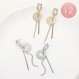 12Pairs - Geometric Metal Bar Rhinestone Dropdown Dangle Earrings