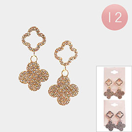 12Pairs - Stone Paved Quatrefoil Stud Earrings