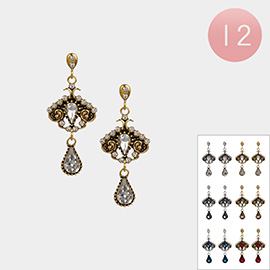 12Pairs - Metal Filigree Floral Teardrop Dangle Earrings