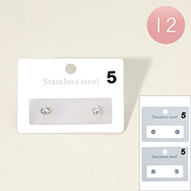 12Pairs - Stainless Steel 0.6mm Round Stone Stud Earrings