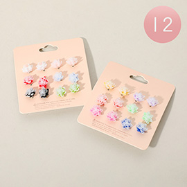 12Pairs - Rhinestone Paved Flower Stud Earrings