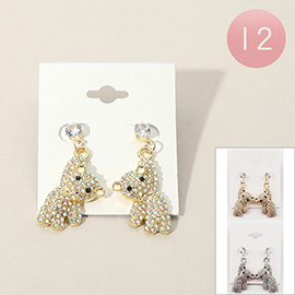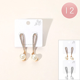 12Pairs - Stone Pearl Paved Bunny Stud Earrings