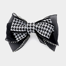 Pearl Pointed Flower Center Tweed Bow Barrette