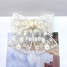 Pearl Pointed Flower Lace Chiffon Bow Barrette