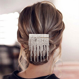 Oversized Pearl Dangle Pointed Chain Pattern Bow Barrette
