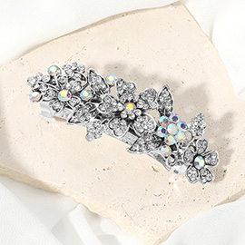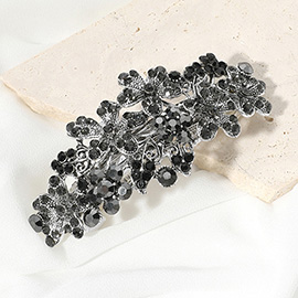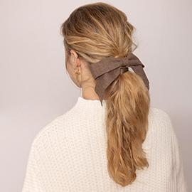 Pearl Pointed Faux Leather Braided Flower Center Oversized Bow Barrette