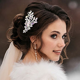 Marquise Stone Cluster Leaf Branch Floral Hair Comb