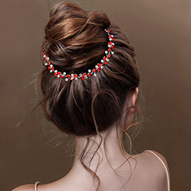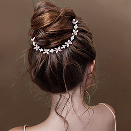 CZ Stone Paved Flower Accent Leaf Vine Bun Wrap Headpiece
