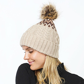 Cable Knit Faux Fur Pom Pom Beanie Hat