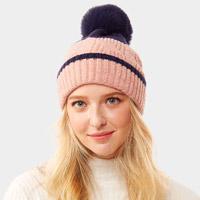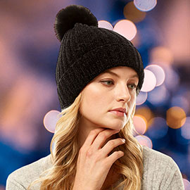 Lurex Ribbed Knit Pom Pom Beanie Hat