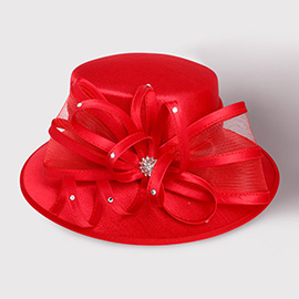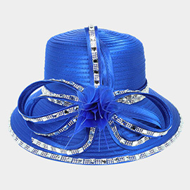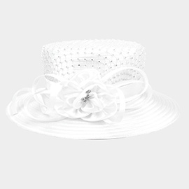 Rhinestone Rim Flower Bow Dressy Hat Quick Shop