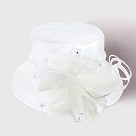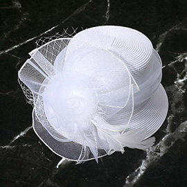 Flower Feather Accented Double Layered Organza Hat Quick Shop