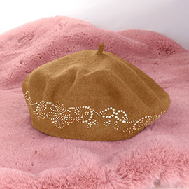 Stone Embellished Chenille Pom Pom Beanie Hat