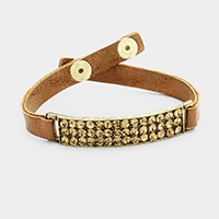 Brass Metal Rhinestone Adjustable Pull Tie Bracelet