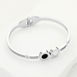 Stainless Steel Enamel Inlay CZ Stone Accents Hinged Bangle Bracelet