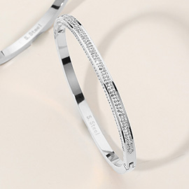 SECRET BOX_Stainless Steel Single Row Rhinestone Paved Hinged Bangle Bracelet