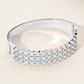 Stainless Steel Geometric CZ Stone Paved Hinged Bangle Bracelet