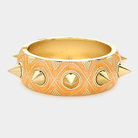 Crisscross Patterned Enamel Metal Hinged Bracelet