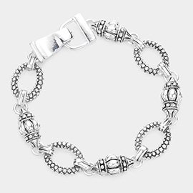 White Gold Dipped Textured Ring Link Chunky Chain Bracelet