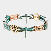 "Faith Hope Love Joy Wish" Metal Flower Stretch Bracelet