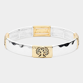 Tree Of Life Pointed Hammered Metal Stretch Bracelet