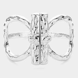 White Gold Dipped Textured Metal Quatrefoil Pointed Bracelet