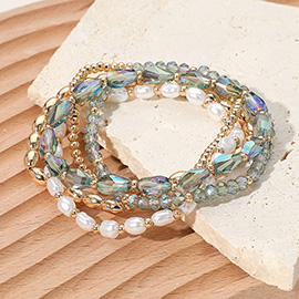 4PCS - Pearl Metal Ball Mixed Beaded Stretch Multi Layered Bracelets