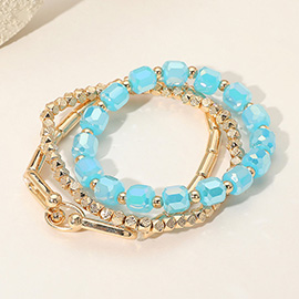 3PCS - Faceted Beads Heishi Beaded Stretch Multi Layered Bracelets