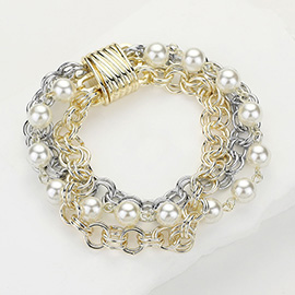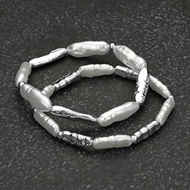 Alternating Metal Pearl Beaded Stretch Statement Bracelet