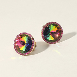 Round Faceted Stone Ring Dangle Evening Clip On Earrings