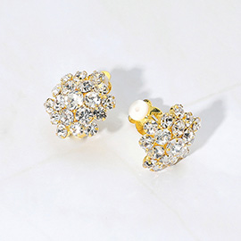 Oversized Rhinestone Cluster Heart Evening Clip On Earrings