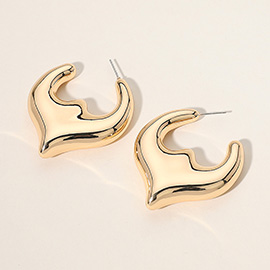 Bold Metal Sculpted Fan Drop Earrings