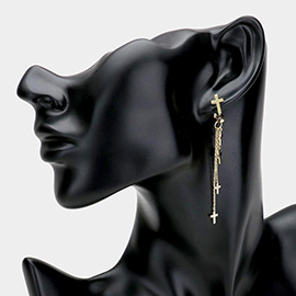 Stone Accent Two Tone Cross Dangle Earrings