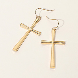 Two Tone Metal Cross Tip Angel Wing Dangle Earrings