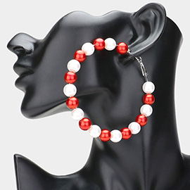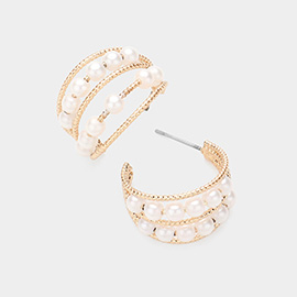 White Gold Dipped Pearl Beaded Hoop Earrings